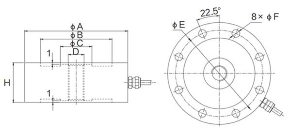 型號(hào) | 量程(t) | ?A | ?B | ?C | D | E | ?F | H |