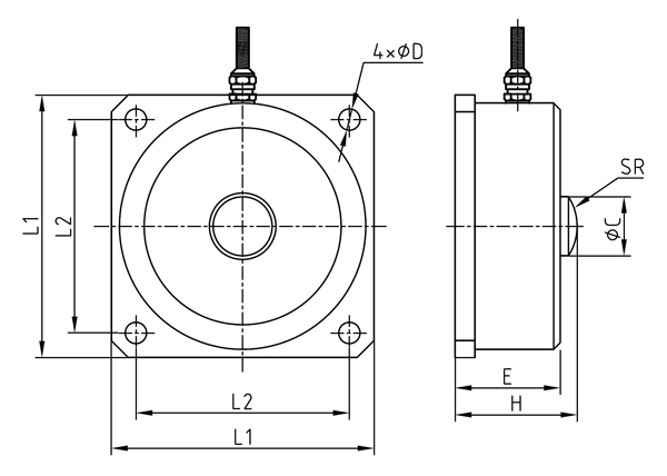 型號 | 量程(kN) | 量程(t) | L1 | L2 | ΦC | ΦD | H | E | SR |