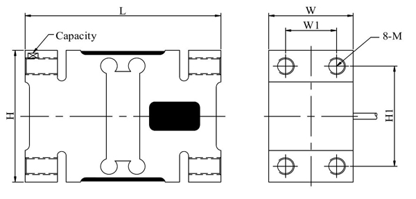 型號 | 量程(kN) | 量程(kg) | L | W | W1 | H | H1 | M | 推薦安裝尺寸 |