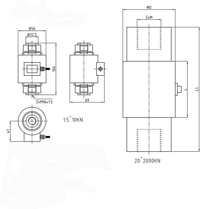 型號 | 量程(kN) | 量程(t) | D | L | L1 | M |